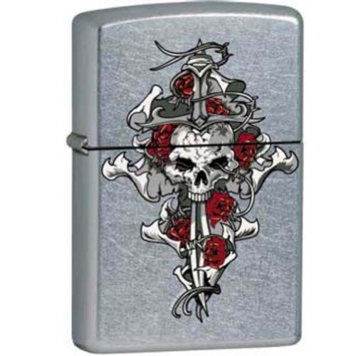 - Skull Rose Dagger Street Chrome Zippo Lighter